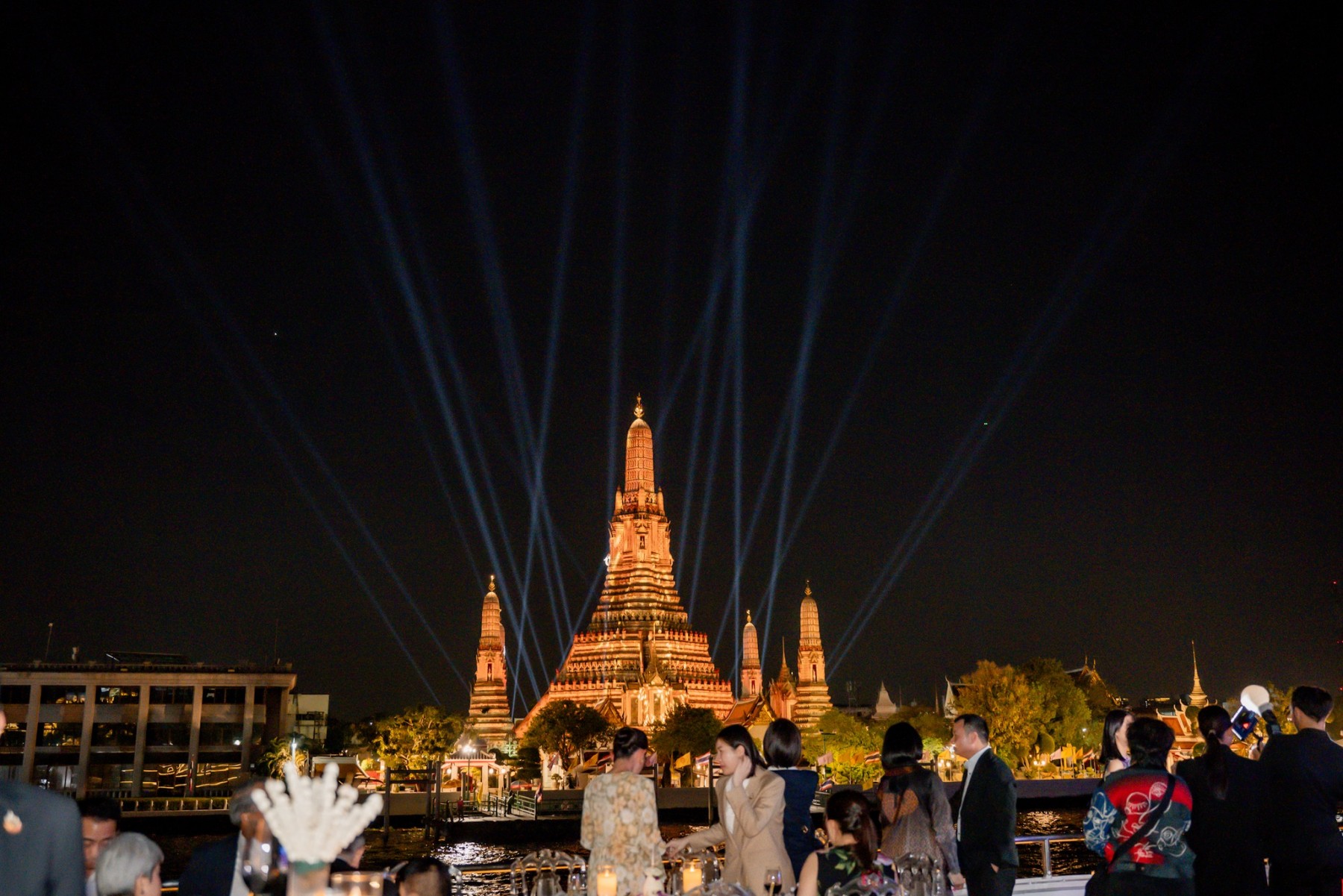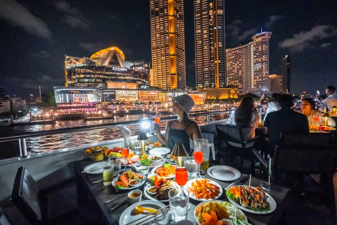 Alangka Cruise start and end at Iconsiam where you can enjoy shoping and taling picture at Chao Phraya river view. Enjoying the Thai & International buffet with great live music duieng your dinner time om board with passing many beautiful historical landmarks such as the Grand Palace, Temple of Dawn, Wat Arun Temple and other famous buildings that lay alongside the river.