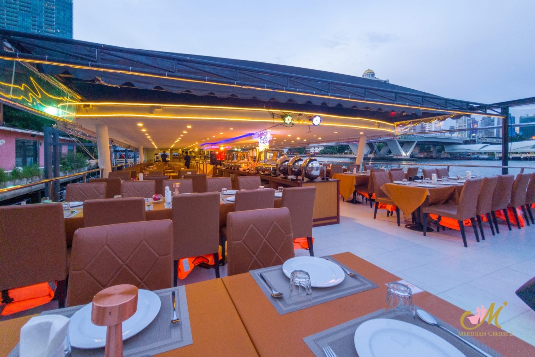We are welcome you to absorb the feeling and the happiness with our luxury designed cruise. You could feel the very Best SERVICE and super delicious dinner as they are cooked by the Micheline Star Chef. Enjoy your dinner with the best scenery of the Chao Phraya River, the history river of Thailand. Along the way, you will enjoy with your happiness with our best Filipino Singer and the Thai Classical Show. We are waiting for you to sail with us at “Meridian Cruise”